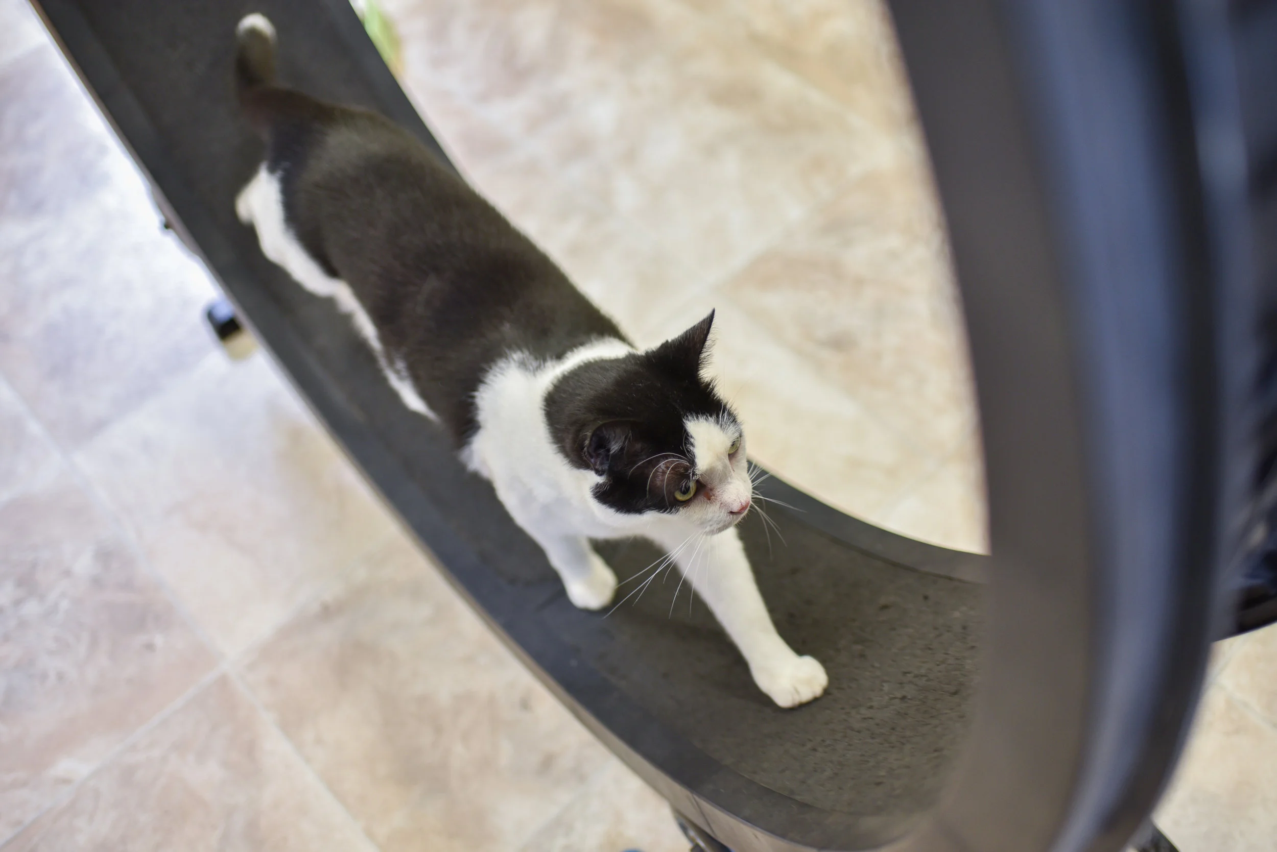 Leon is a sweet cat who loves to play and keep in shape by running on our shelter treadmill. We do try and keep him on a diet as he loves to eat and will eat his food and everyone else’s if allowed to. We only feed him wet food.